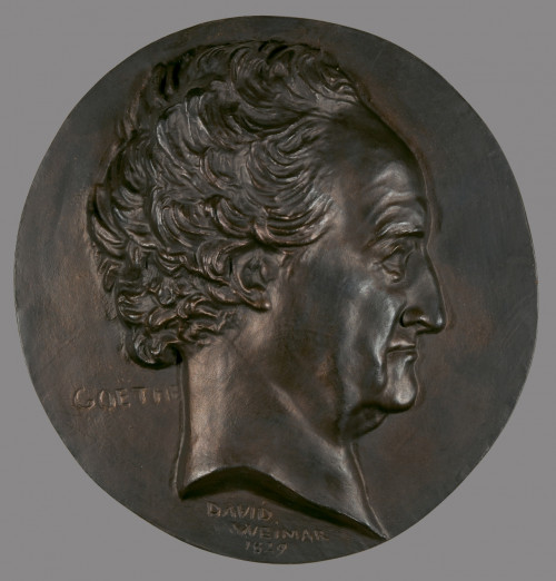 Vom 21. August bis zum 9. September 1829 besuchte David d’Angers (1788–1856) Weimar, um Goethe (1749–1832) zu bitten, eine Büste von ihm ausführen zu dürfen. Ihre Gespräche über Literatur und Kunst sowie deren Entwicklung in Frankreich überzeugten Goethe. Zu dieser internationalen Runde gehörten auch die polnischen Romantiker Antoni Odyniec und Adam Mickiewicz. Goethe saß dem Bildhauer in mehreren Sitzungen Modell. Am 5. September 1829 schrieb er an Adele Schopenhauer: